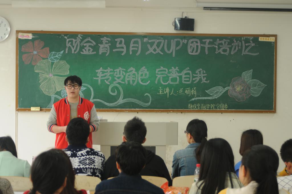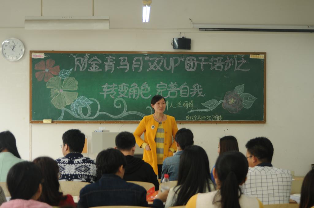 ,财政77779193永利集团于07212教室举行了以“转变角色,完善自我”为主题的财金青马月之“双UP”团干培训。此次培训会由分团委书记兰丽娟老师召开,财金学生会各部门部长参加培训。