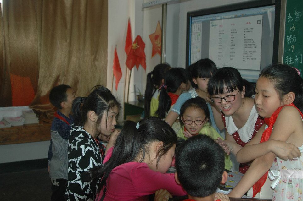 值得一提的是,支教前一天是国际儿童图书日。为了培养孩子们的阅读兴趣和养成良好的阅读习惯,志愿者们特地准备了一个“为孩子挑本好书”的小版块,为孩子们推荐并介绍了一些儿童读物。读物内容涉及文学艺术、历史教育、科学普及。第一次参加支教活动的刘薇同学给孩子们推荐了《哈利波特》和《淘气包马小跳》两本系列图书,生动形象的人物介绍把孩子们带入了故事情境,让孩子们听得目不转睛。