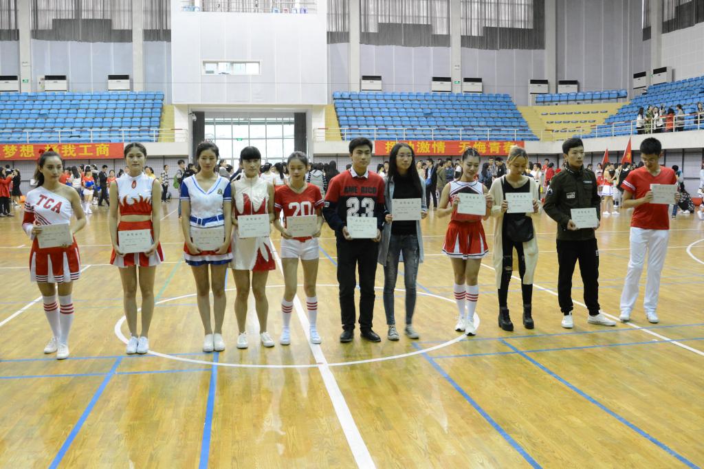 此次参赛的是来自20个学院的21支充满活力的代表队伍。财金学院啦啦操代表队——“战英队”成立以来第一次参与比赛,他们以饱满的热情,彰显着青春的魅力。队员们心怀“为财金争光”的信念,在一个月的训练中毫无懈怠、力求最好。比赛中,他们的每一次挥手、跺脚都坚定有力,毫不生涩,散发出自信与活力,博得了阵阵欢呼与掌声。在观众们逐渐高涨的热情中,历时两小时的比赛以学校体育舞蹈代表队优美流畅的表演收尾,财金学院啦啦队荣获三等奖。