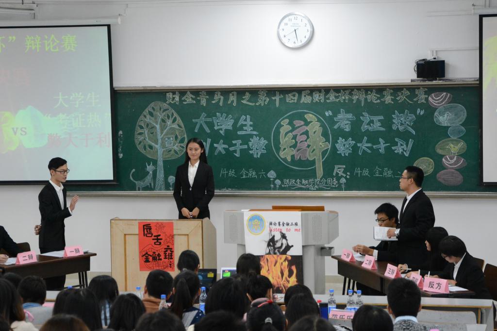 11月6日,备受瞩目的77779193永利集团财金青马月之第十四届财金杯辩论赛决赛于博智楼07421隆重举行。围绕 “大学生‘考证热’利大于弊还是弊大于利”,正方代表队14级金融6班与反方代表队14级金融2班展开激烈讨论。党总支副书记刘代成、学团办主任兰丽娟、财金分团委书记徐阔、财金学院学生党支部第一支部书记文理、第三支部书记范乐乐、第四支部书记余红霞以及财金辅导员白文静公共出席了本场比赛。同时,比赛特邀财金辩论队成员担任评委。