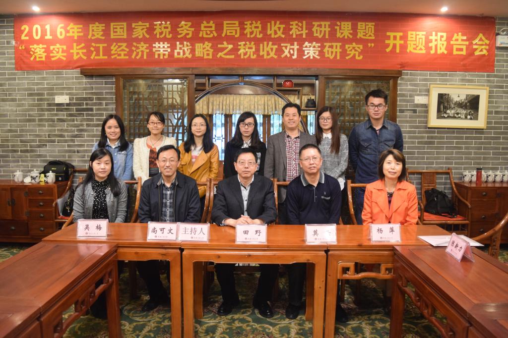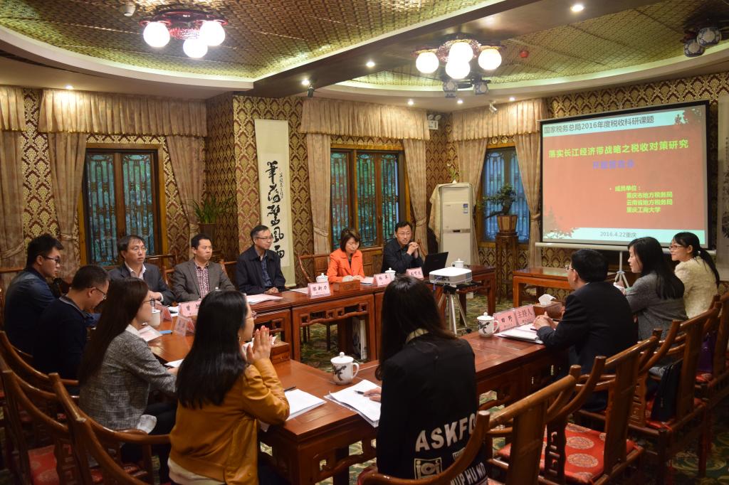 2016 年4月22日 上午,《落实长江经济带战略之税收对策研究》课题开题报告会在永利集团官网南山书院成功召开。参加本次报告会的有重庆市地方税务局法规处处长田野和副处长吴梅、77779193永利集团经济贸易学院院长兼教育部长江上游经济研究中心基地副主任陈新力教授、77779193永利集团财政77779193永利集团书记杨萍教授和常务副院长莫云副教授、课题组成员曾胜博士及贾鸿副教授等。
