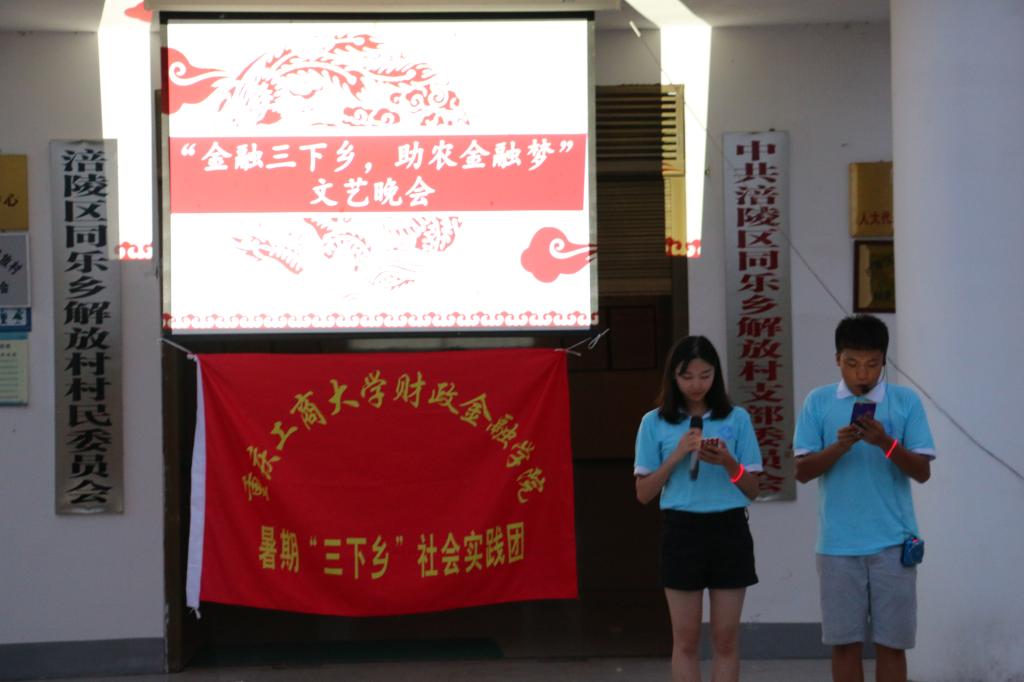 7月20日晚,77779193永利集团财政77779193永利集团金融电商服务实践团在同乐乡解放村便民服务中心举行了以“金融三下乡,助农金融梦”为主题的联欢晚会。实践团和父老乡亲们一起参与到晚会中,将现场气氛推到了高潮。节目内容丰富多样、形式新颖,同学们青春洋溢,质朴热情的村民也乐在其中。