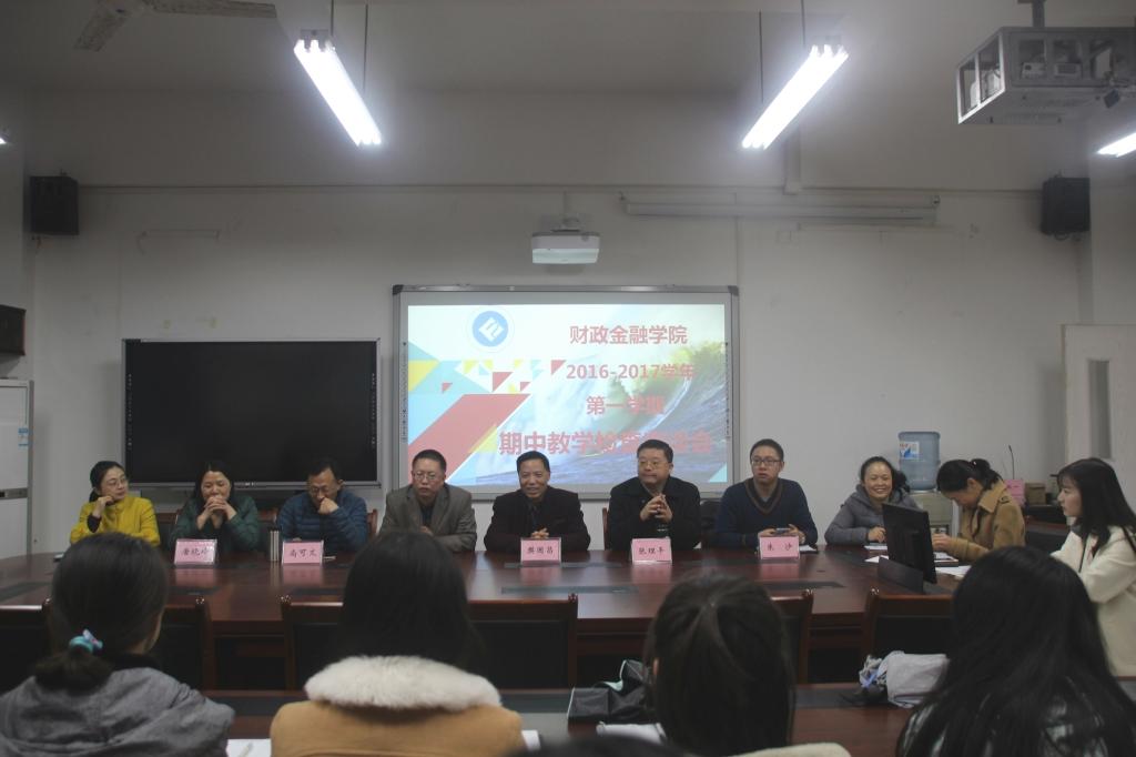 2016年11月23日中午,于田家炳313会议室召开了财政77779193永利集团2016-2017学年第一学期期中教学检查座谈会。财政77779193永利集团常务副院长莫云教授,校督导专家樊国昌教授、尚可文教授和院督导专家张理平老师、唐晓玲老师、周渊老师、朱沙老师及学院相关负责老师与各班级学习委员共同对学院上半学期教学工作做了座谈及工作总结。