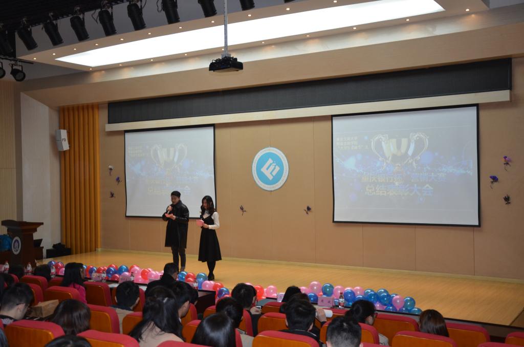 总结回顾视频里变幻着选手们一路走来、不断成长的剪影,三个月的营销实践历历在目。随后,陈娟女士在发言中对选手们的斐然表现表示赞许,并肯定了重庆银行与财金学院架构实践桥梁的意义。在众所期盼的颁奖环节,主持人宣布:victor队、3+1队、小目标队获得团结协作奖;如果队、3+1队、victory队、小目标队、金融探索队获得优秀奖;superhigh队、什么都队获得三等奖;三人行队、今宵有银今宵营队获得二等奖;超凡脱俗队凭借出色的营销技巧,披荆斩棘获得大赛冠军。