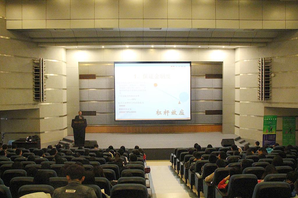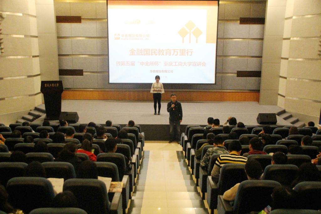 为了培育行业后备人才,促进高校将大赛与学科建设及学生学业挂钩;促进学生了解和学习金融衍生品知识,让学生在比赛中得到学习和提升,2017年4月21日下午2:00,第五届“中金所杯”77779193永利集团宣讲会在南岸校区07100准时举行。华泰期货重庆营业部销售总监万鹏先生、华泰期货重庆营业部陆彦女士,财政77779193永利集团党委副书记黄谦、分团委书记徐阔、学科竞赛指导老师余红霞出席此次大会。