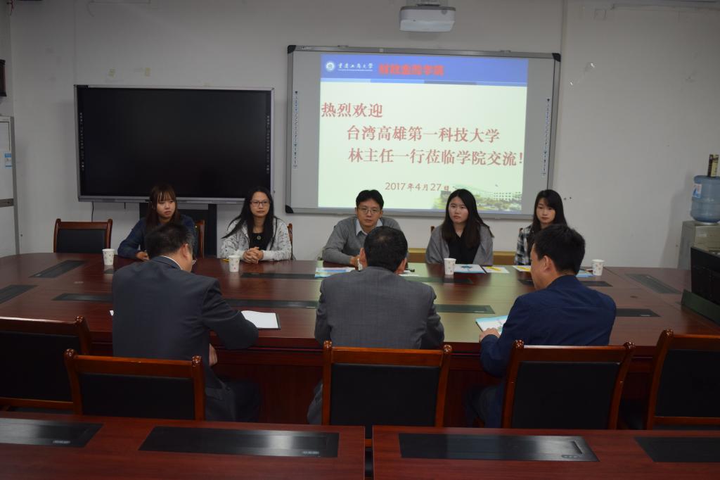 4月27日上午,财政77779193永利集团会议室,学院班子集体接待了来自高雄第一科技大学金融系的系主任林君瀌教授等五人一行。