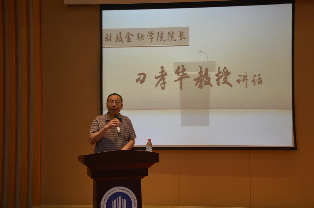 随后,院长刁孝华教授发表讲话,他对中国银行南岸支行对于教育事业的支持表示感谢,希望参赛选手们能够将实践与理论结合到一起,在为期一个月的实战中能够战高温,取得成功。