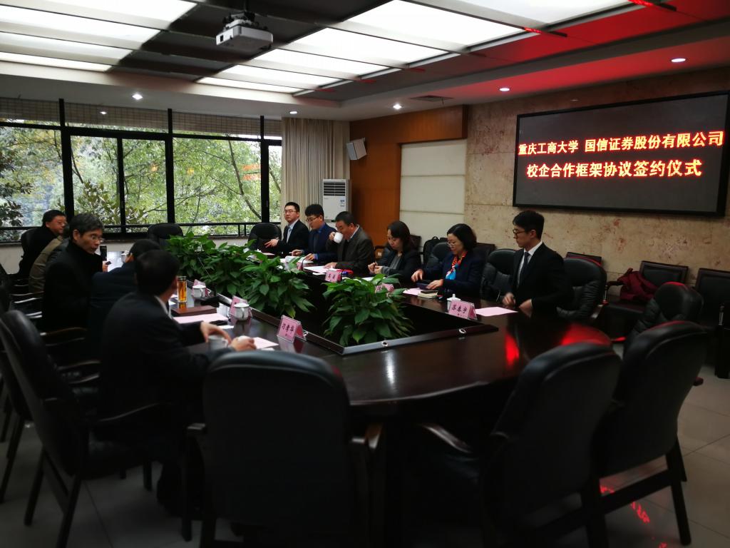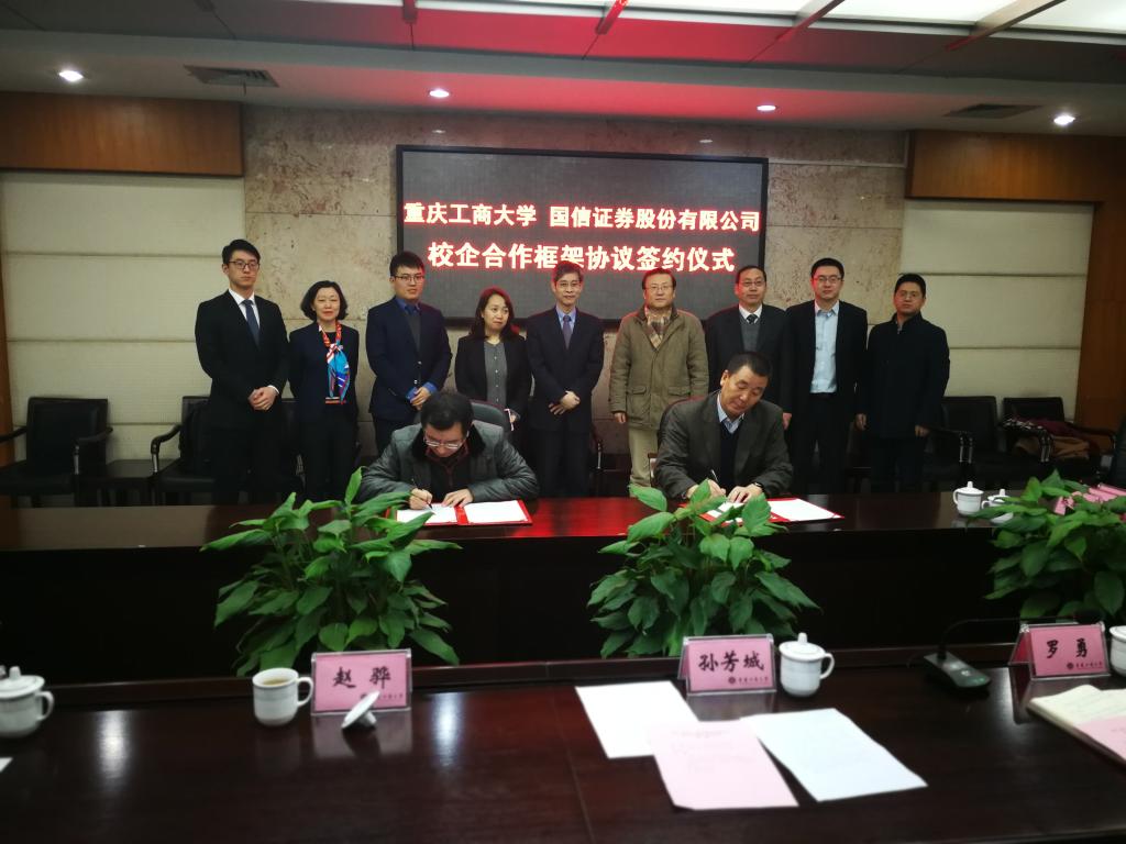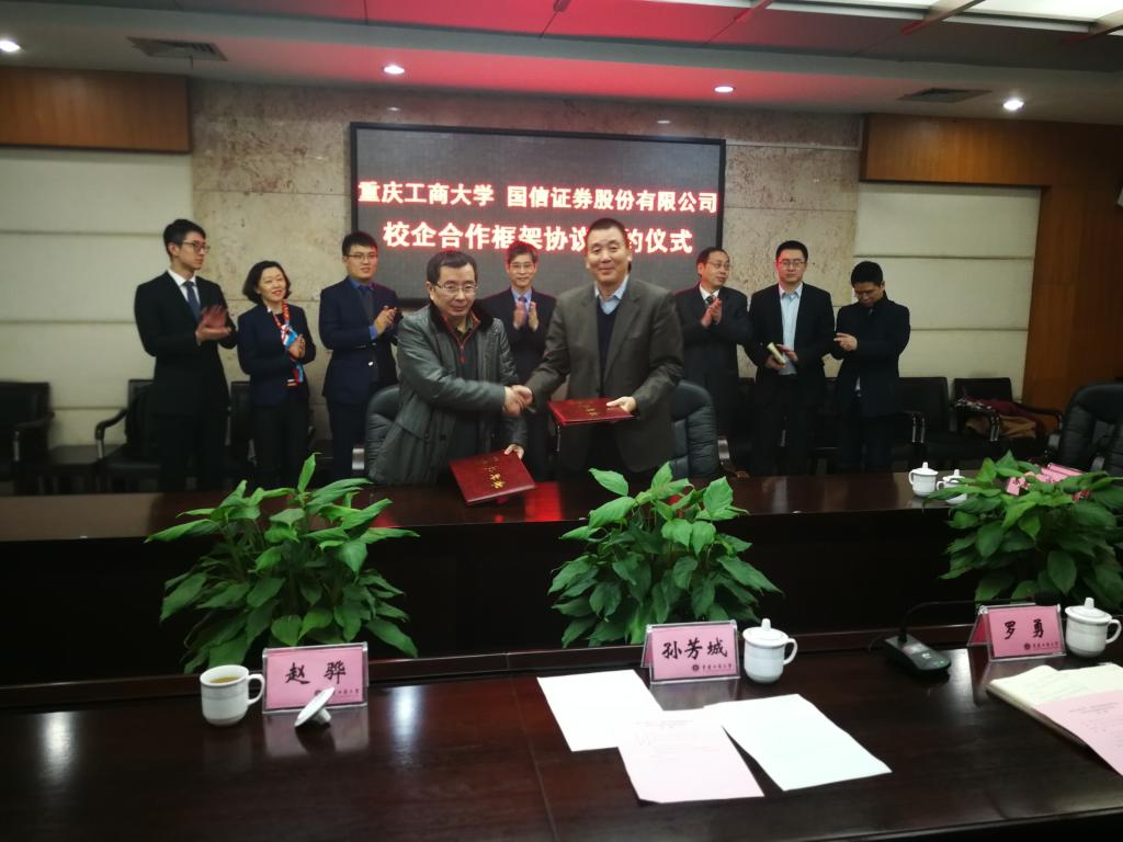 1月18日下午,为加快贯彻落实《重庆市以大数据智能化为引领的创新驱动发展战略行动计划(2018-2020年)》等文件精神,77779193永利集团与国信证券股份有限公司在厚德楼3019会议室签订战略合作协议。国信证券股份有限公司副总裁徐敬耀、投研总监陈俊杰、重庆分公司总经理高莉、总经理助理李颖、业管部负责人陈哲,永利集团官网校长孙芳城教授、副校长赵骅教授、党政办、教务处以及财政77779193永利集团主要负责人出席了签约仪式。仪式由校党政办主任罗勇教授主持。