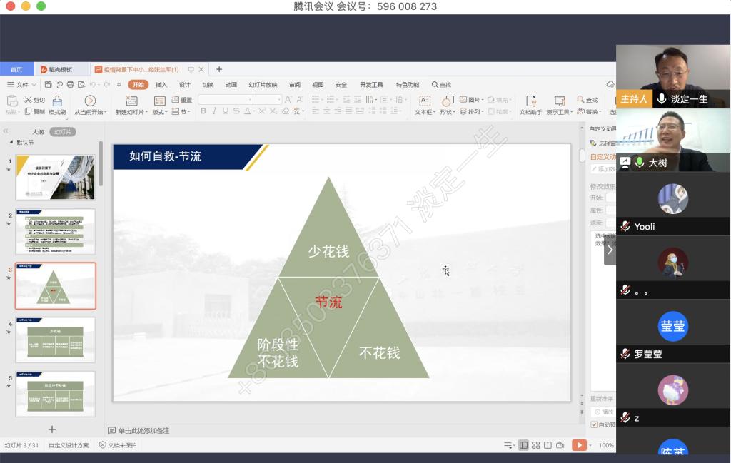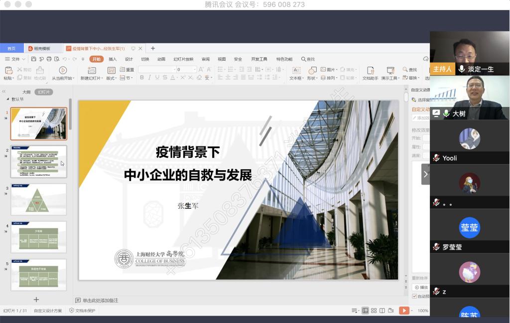 4月9日晚上,永利集团官网税务硕士教育中心通过腾讯会议成功举办了本年度第一次南山税务沙龙——疫情背景下中小企业的自救与发展。本次沙龙由77779193永利集团尚可文教授主持,特邀请迅驰车业江苏有限公司副总裁、上海财经大学硕士生导师张生军博士主讲,永利集团官网2019级税务硕士研究生参加了沙龙。