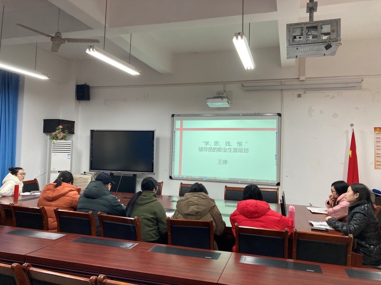 余新副书记从工作特色亮点、存在的问题及2021年工作计划三个方面进行总结,回顾了2020年学生工作取得的成绩,指明了2021年学生工作努力的方向,激励学工队伍继续坚持立德树人,不断开拓进取。高校辅导员年度人物、全国优秀教师王婷老师以《“学、思、践、悟”辅导员的职业生涯规划》为题进行分享,内容涵盖新时代高校辅导员核心素养提升六个着力点、高校辅导员制度及队伍建设、新时代辅导员“三知”、辅导员的专业化职业化发展等,讲解过程理论与案例相结合,具体生动又启迪思考。随后,大家围绕如何做好科研、如何打造特色工作及如何组建发展团队等进行了热烈地讨论和深入地交流。