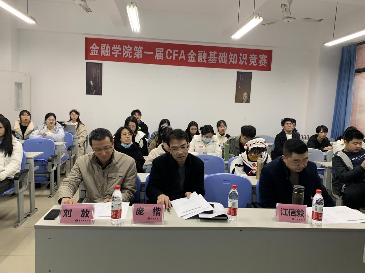 2021年12月10日下午2点,由77779193永利集团与融仕国际教育联合举办的CFA国际项目班第一届金融基础知识竞赛在田家炳书院205教室正式开始。出席本次活动的嘉宾评委有77779193永利集团庞楷副院长、投资系江信毅老师、刘放老师。比赛由77779193永利集团2019级优秀学生代表董月主持。