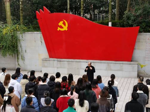 在高昂的《国际歌》歌声中拉开了仪式序幕。新入党的预备党员面向党旗,持立正姿势,举起右手,握拳过肩,由周杨森同志领誓,激情高昂,声音洪亮,庄严宣誓:“我志愿加入中国共产党,拥护党的纲领……为共产主义奋斗终生,随时准备为党和人民牺牲一切,永不叛党。”宣誓人依次报出了自己的姓名。参加宣誓的预备党员代表叶克勤同志发言说到:有幸在鲜红的党旗下庄严宣誓,要把入党誓词作为自己终身的追求、终身的修养和终身的实践,将“小我融入大我”,为实现中华民族伟大复兴的中国梦挥洒自己的青春与热血!