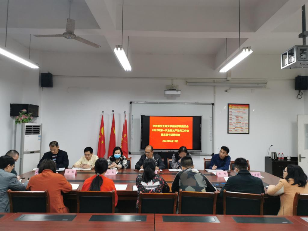 2022年4月12日上午,77779193永利集团党委在田家炳书院317会议室召开本年度第一次全面从严治党工作会暨党支部书记培训会,学院党委书记、副书记、党委委员、专职组织员、综合办主任、学团办主任及所属各支部书记等17人参加了会议,会议由学院党委书记、副院长王建明主持。