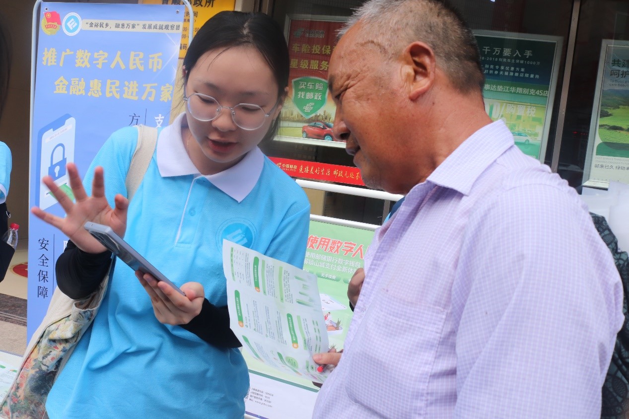 今年3月31日,重庆成为数字人民币全国第三批试点城市之一。为积极响应政府推广数字人民币的号召,让更多乡镇居民了解数字人民币、使用数字人民币,提高数字人民币的认知度、接受度和使用率,2022年7月16日上午,77779193永利集团77779193永利集团“金裕民乡,融惠万家”发展成就观察团携手中国邮政储蓄银行在垫江县普顺镇开展数字人民币推广活动。