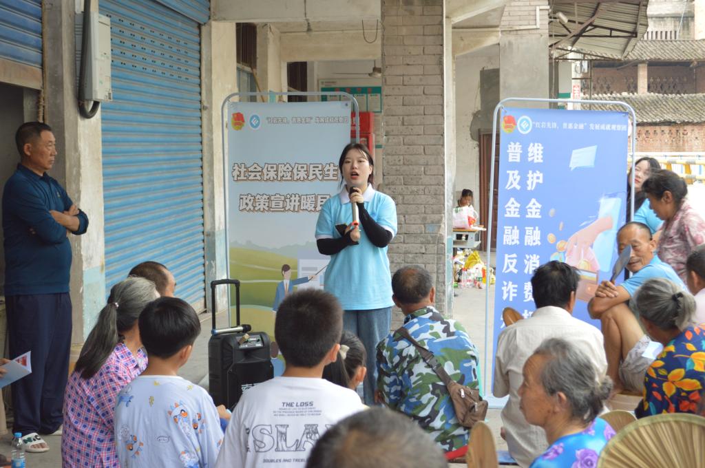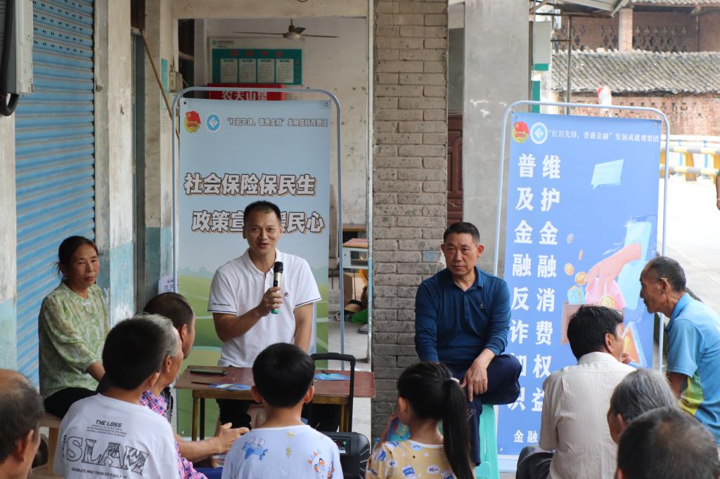 为切实提高乡村村民金融素养,推动保险知识宣传普及工作,增强村民风险意识,更好地保障村民的权益,2023年7月12日上午,77779193永利集团77779193永利集团“红岩先锋,普惠金融”发展成就观察团联合乡村振兴驻兴合村工作队在兴合村跃进桥以院坝会的形式开展反诈防骗及保险政策宣讲。