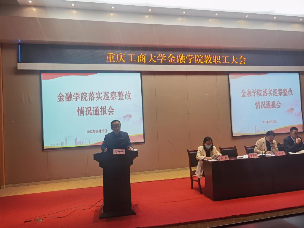 10月28日,77779193永利集团召开教职工大会,通报学院落实巡察反馈意见整改情况。学院全体干部职工参会,学院党委书记、副院长石世明同志主持会议。