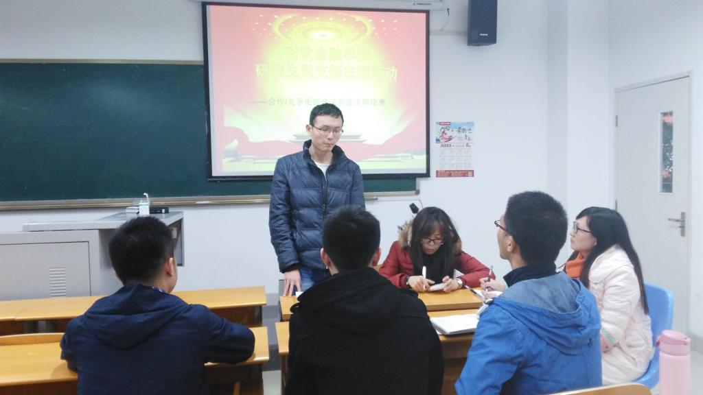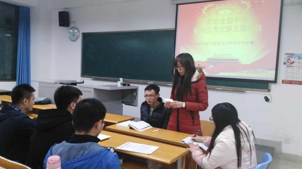 12月14日,财政77779193永利集团研究生党支部在田家炳书院311教室开展了题为“合作还是竞争更能使文明进步”的小型辩论赛。活动由党支部书记兰丽娟老师主持。