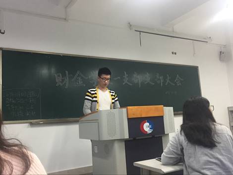 2017年11月8日下午5点40,77779193永利集团财政77779193永利集团分党委学生第一党支部在田家炳307召开了本学期的第四次支部大会,会议由李明西同志主持,财金学生一支部书记文理列席会议。本次会议的主要内容有:1、讨论6名14级同学和1名15级同学的转正决议。2、讨论3个15级同学的发展决议。3、支部书记文理作总结发言,对本支部发展的同学提出要求。