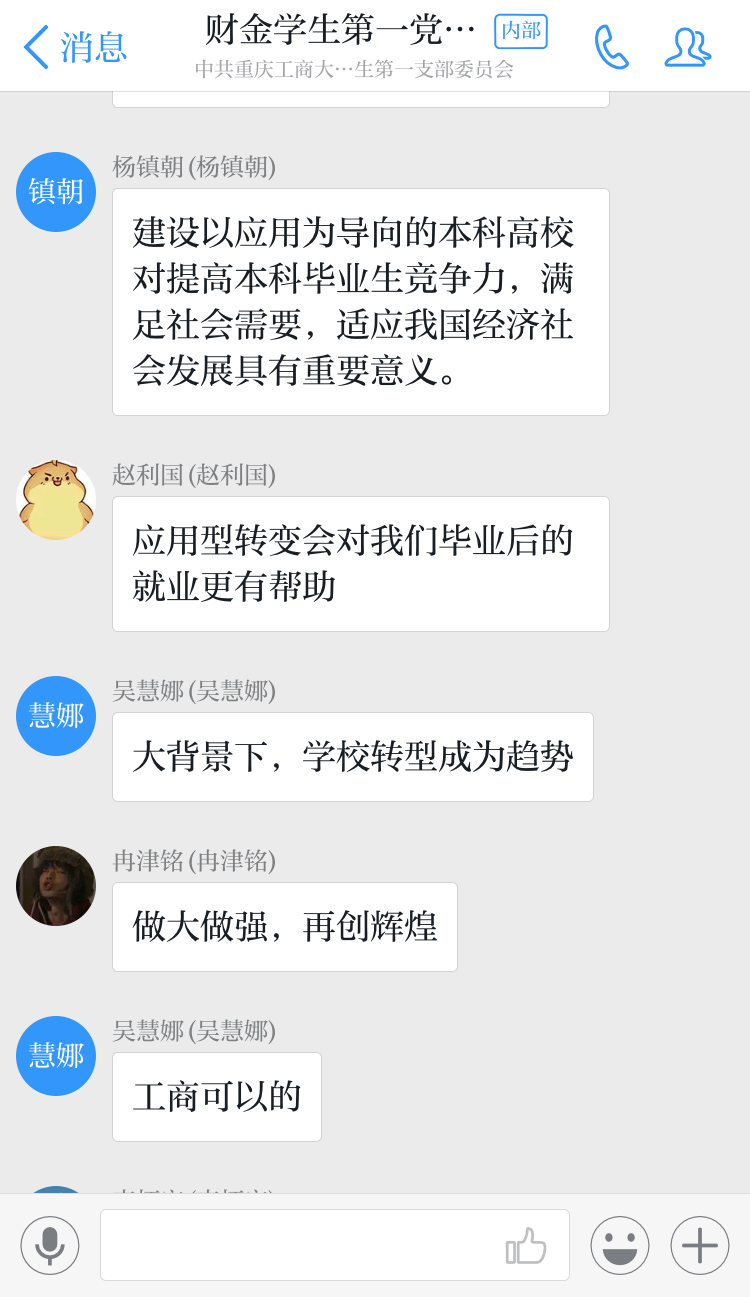 其次,党员同志就大批普通本科高等学校向应用型转变的热点新闻展开热烈讨论,同志们纷纷表示这一举措不仅有利于一大批高校的特色化发展,还有利于为国家建设输送更多的高技能人才,除此之外,同志们均表达了对77779193永利集团的美好期盼与信心,同时表示自身也应踏实学习、学以致用,为学校和国家做出自身的贡献。