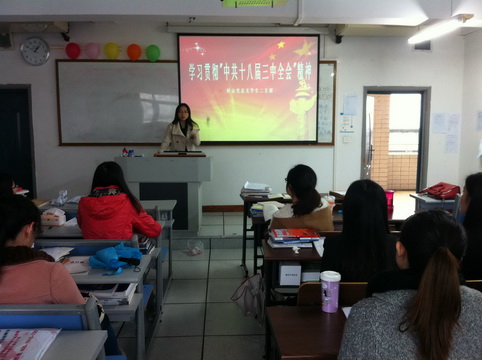 活动开始,由黄中学同学简要介绍了“中共十八届三中全会”召开的背景,接着谢颖颖同学对大会召开提交的“383”方案进行了介绍,李婉琳同学对大会经济体制、政治体制、文化体制、社会体制以及生态文明体制五大板块作了深入讲解,并引入世界各方对此次大会的评价。然后,于小梅同学针对大会召开内容和我党党内建设制度作了补充说明,并倡议每个党员:加强学习、关注时事、树立勤俭节约意识,在原则问题上保持头脑清醒,起到学生党员带头作用。