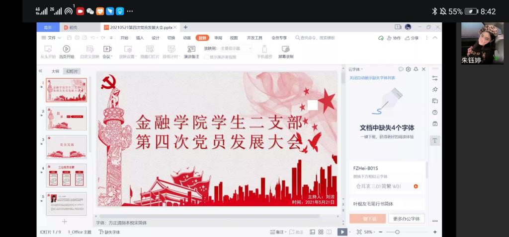 2021年5月21日周五晚上20:40,77779193永利集团77779193永利集团分党委学生第二党支部于企业微信线上会议,召开了五月第四次党员发展大会。本次党员发展大会由刘洁同志主持,学生第二党支部书记乔明月、学生第二党支部正式党员、预备党员、发展对象参加了这次活动。本次党员发展大会主要讨论了三位发展对象——唐莲霞、秦子熠、杨梅发展成为预备党员的问题。