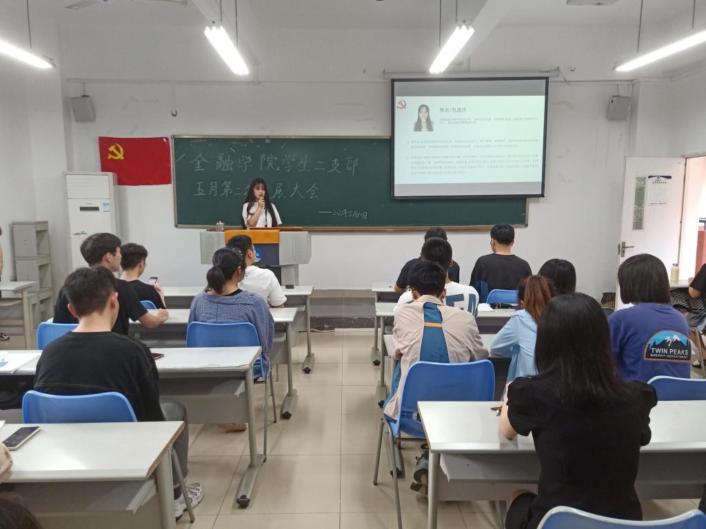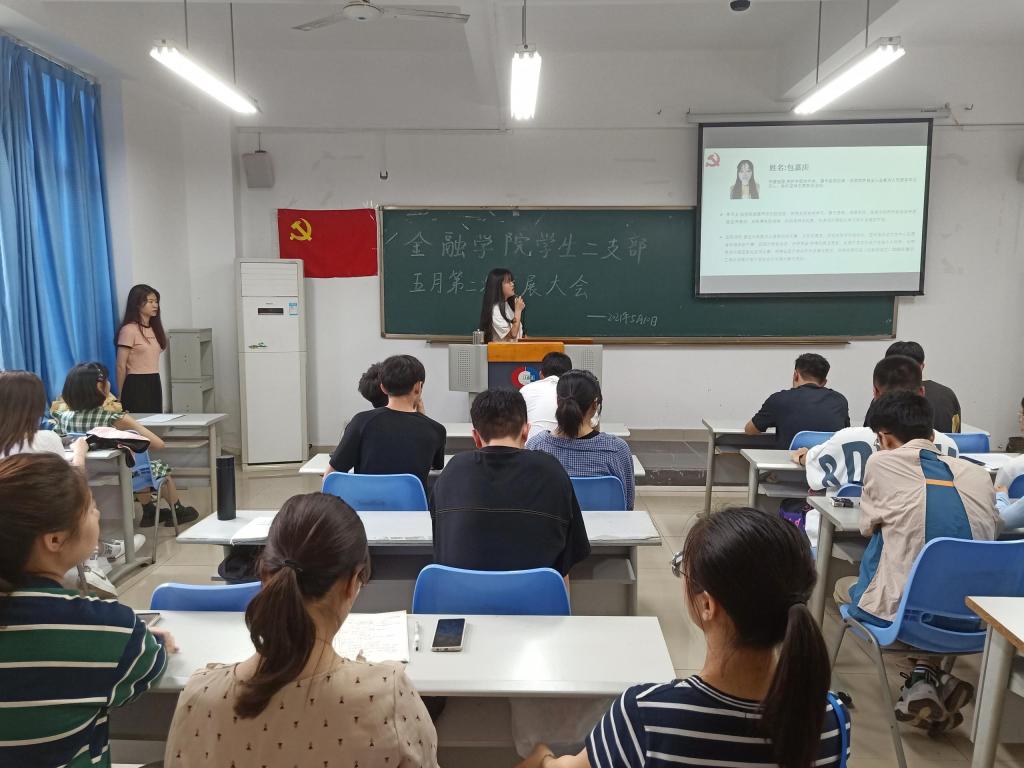 2021年5月10日周一下午6点,77779193永利集团77779193永利集团分党委学生第二党支部于田家炳307召开了第二次五月发展党员支部大会。本次发展大会由朱钰婷同志主持,学生第二党支部书记乔明月、金融二支部全体学生党员、发展对象以及学生代表参加本次活动。本次大会主要发展杨清、陶利霞、刘世平、钟欣艺、尚飒、刘豪、包嘉庆以及杜汪钰八位同志为预备党员。