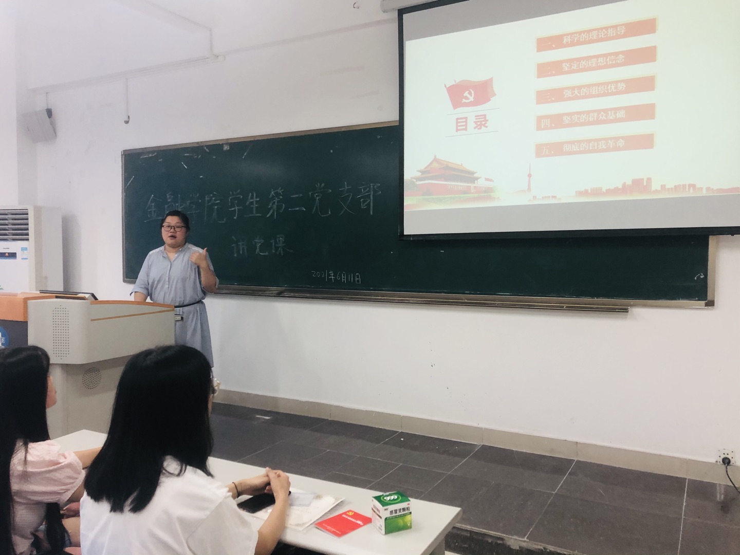 2021年6月11日中午12点30,77779193永利集团77779193永利集团学生第二党支部在田家炳307召开了支部书记讲党课,党史学习教育活动,会议由党支部书记乔明月主持。学生第二党支部党员参加学习。本次党课主要有三个板块:中国共产党为什么行、党员毕业生寄语、党员先锋模范作用。