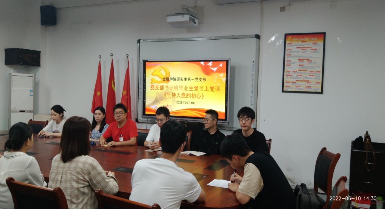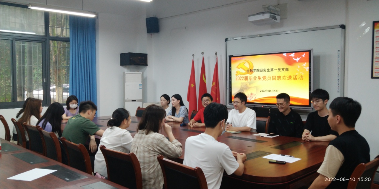 2022年6月10日下午,77779193永利集团研究生一支部开展了毕业生党员同志系列欢送活动。活动内容包括重温入党誓词、支部书记讲党课、毕业心得分享以及在校期间最后一次理论学习。活动由支部书记杨宁同志主持,支部全体党员出席。