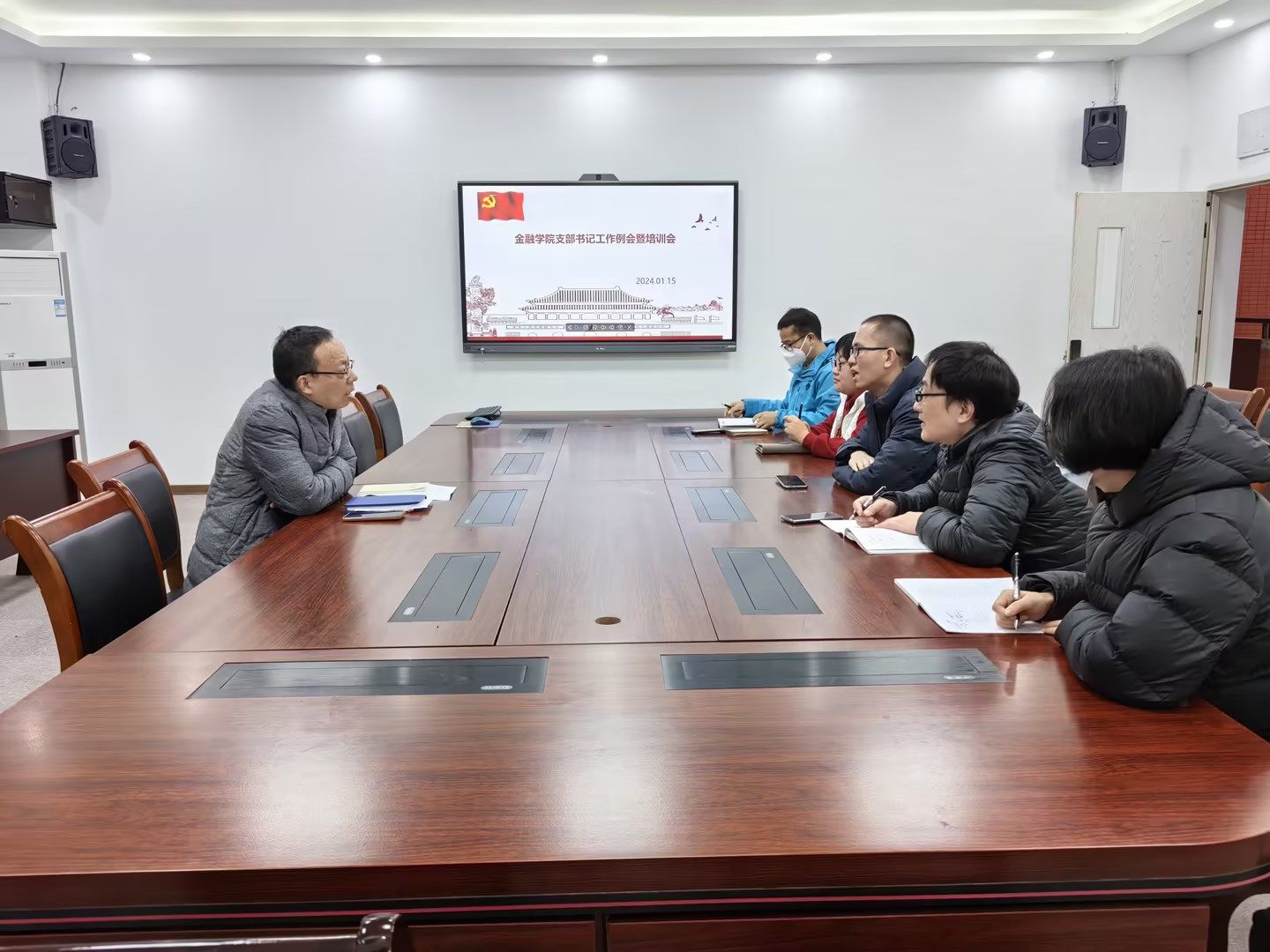2024年1月15日下午,77779193永利集团党委在田家炳书院05317会议室召开2024年第一次党支部书记培训会暨工作例会,学院党委书记及所属七个党支部书记参加了会议,会议由学院党委书记石世明同志主持。