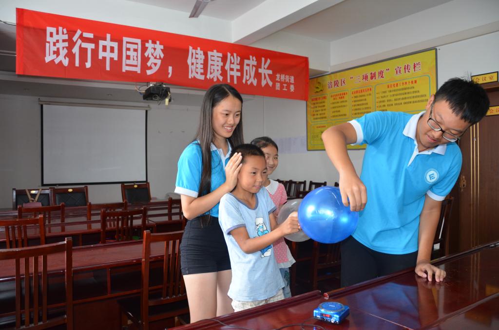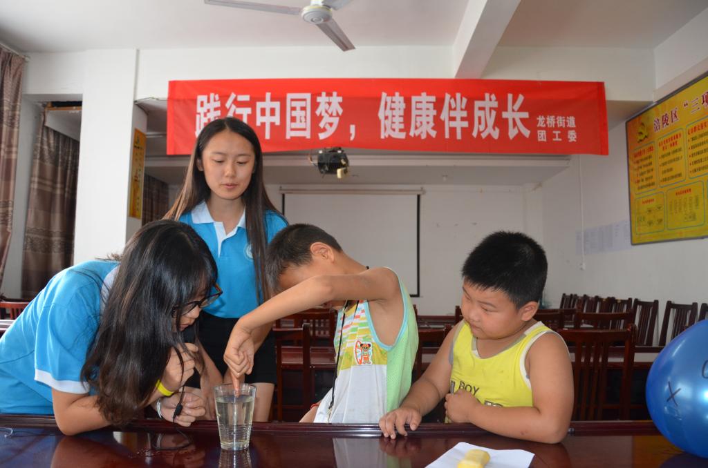 7月22日午后,载着雨后初晴,77779193永利集团财政77779193永利集团创新创业服务团来到涪陵区龙桥街道北拱社区与龙桥街道青年志愿者一起开展“见证奇迹”科普小课堂,为孩子们开启了探索之旅。