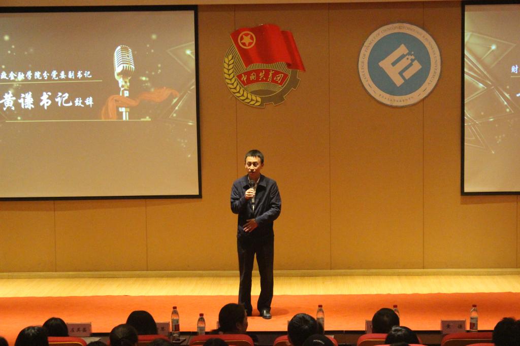 财金舞蹈队以婀娜曼妙的舞姿为大会拉开了帷幕,与会人员一同在总结视频中回顾选手们一路走来的优秀表现与酸甜苦辣,三个月的营销历程历历在目。随后,学院党委副书记黄谦发表讲话,表达了对重庆银行以及学院各领导大力支持的感谢,祝贺参赛选手在比赛中取得优异成绩,他还强调此类学科竞赛为学院金融专业的长足发展有重要意义;随后,陆勇先生在发言中肯定了重庆银行与财金学院架构实践桥梁的意义并对各参赛选手在重庆银行各营业网点的优异表现给予高度评价,感谢他们的辛勤付出为重庆银行年度业绩奠定了良好基础。在激动人心的颁奖环节,况娴、周悦等10名同学获得优秀奖;曾永家左、秦雨凡、蔡进获得三等奖;李璨婷、幸夕获得二等奖;杜朝阳凭借出众的营销技能和坚持不懈的精神勇夺大赛冠军。