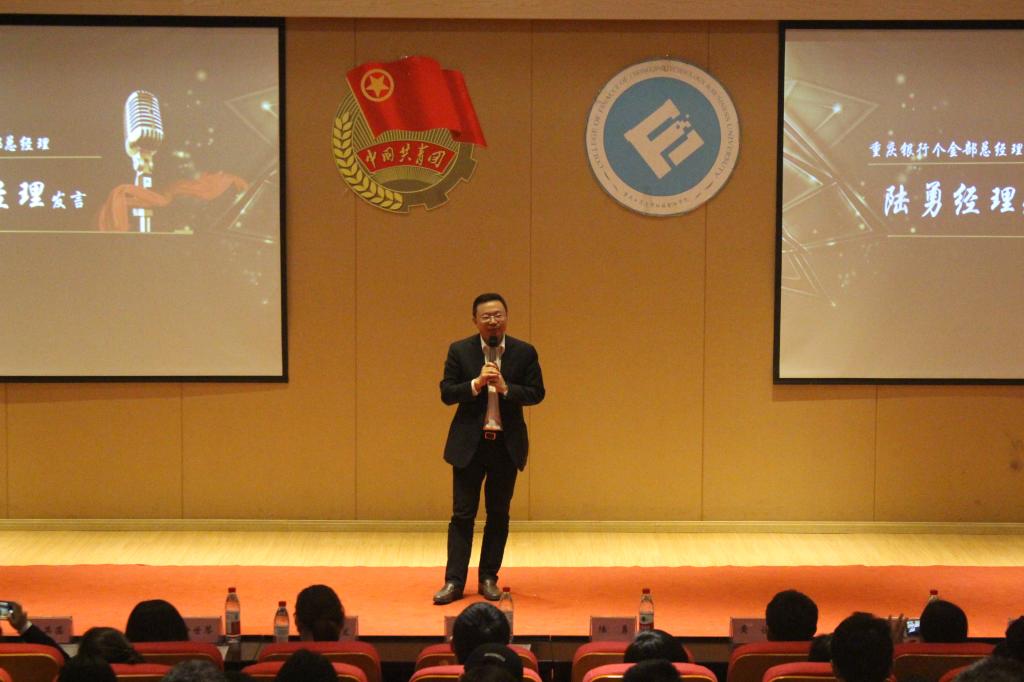 2018年4月25日晚,财政77779193永利集团第二届“重庆银行杯”金牌营销员大赛总结暨表彰大会在田家炳209报告厅隆重举行。重庆银行个金部总经理陆勇,重庆银行个金部周璇、左其菡;财政77779193永利集团党委书记杨萍、党委副书记黄谦、副院长王兰,金融系主任许世琴、讲师杨佳妮以及分团委书记徐阔作为嘉宾莅临了此次大会,与入围决赛的47位选手和现场观众一起回顾历时三个月的漫漫营销路。