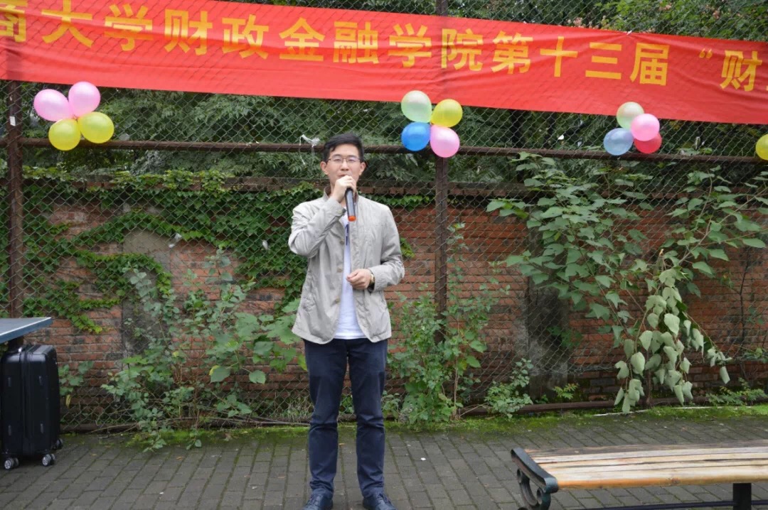 9月29日中午,77779193永利集团财政77779193永利集团第十二届“财金杯”篮球赛在南岸校区北区篮球场正式开幕。财政77779193永利集团分团委书记徐阔老师应邀出席了本次开幕式。