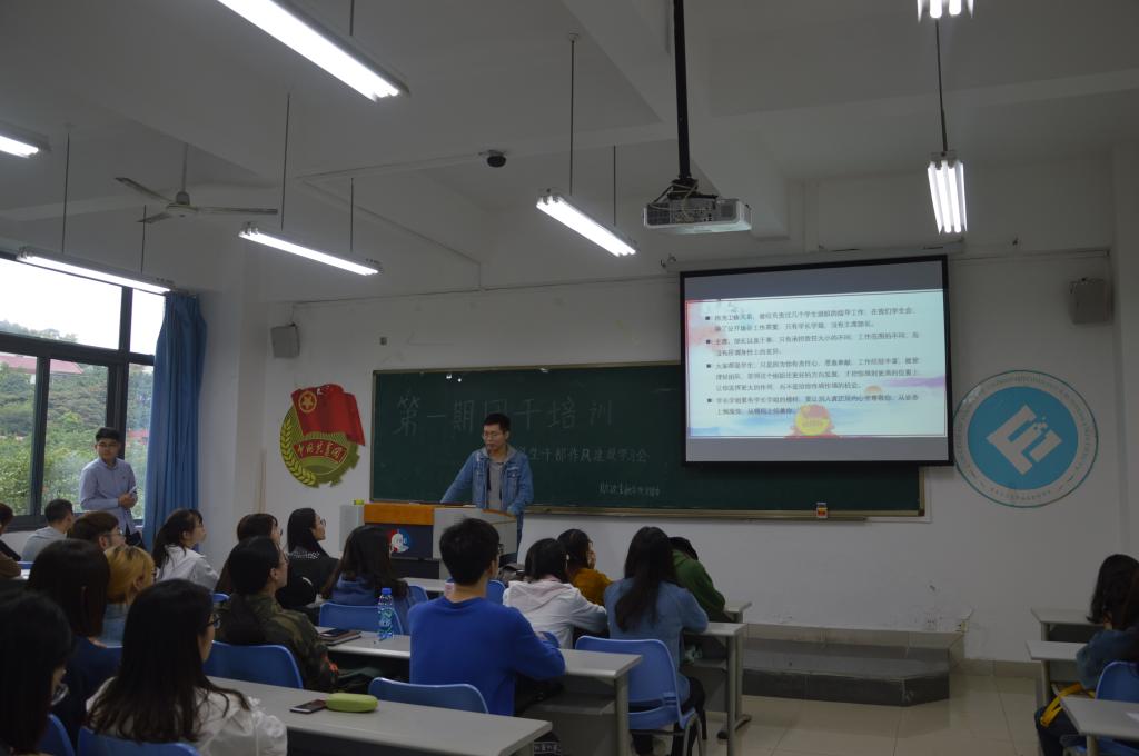 10月18日中午,77779193永利集团财政77779193永利集团在田家炳308教室召开了第八届“财金青马月”系列活动之团干培训。财政77779193永利集团分团委学生会主席团及部长团全体成员参加了本次培训。此次活动旨在增强学生干部的全局意识、服务意识、责任意识,加强学生干部队伍的凝聚力、战斗力,提高学生干部的整体素质,并以此促进学生干部成为学习型、务实型、创新型及自律型为一体的优秀学生干部,从而更好地服务于同学,服务于学院。