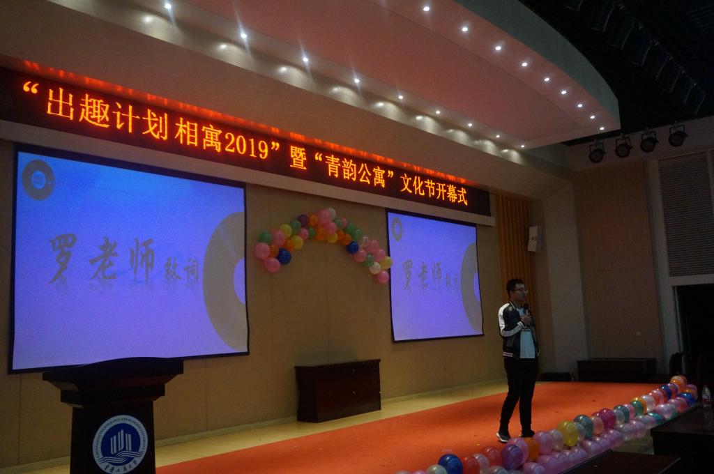 开幕式第一项,罗勇老师上台致辞。他指出,公寓不仅是大学生生活和学习的重要场所,也是课堂之外对学生进行思想政治工作与素质教育的重要场地。同时明确表示“青韵公寓”的核心理念在于打造同学们健康、快乐、充实的公寓生活,希望在“青韵公寓”的文化建设中,同学们都能走出寝室,积极参与活动,共同营造我院优良的学风。