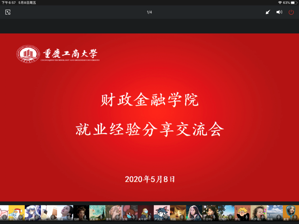 5月8日晚上19:00,永利集团官网在企业微信平台成功举办了线上研究生就业经验分享交流会,活动邀请了2018级金融专硕钱熠琛、2017级金融学刘书涵、2017级金融学王璇、2018级金融专硕和圆、2017级金融学董善雷几位学长学姐与同学们交流就业经验。