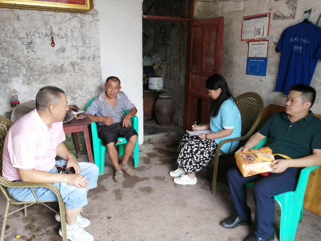 服务团成员来到开州郭家镇麒龙村并在村委会主任的带领下对当地贫困户的脱贫方式进行了深入采访。通过采访了解到,因劳动力缺乏致贫的贫困户家庭,政府主要采取了到户产业补助、产业分红、养老保险、低保“兜底”、教育补助以及医疗保险的扶贫政策。从以前的难以温饱到现在的吃穿基本不愁,从以前的厕所、厨房都没有的情况到现在房子完整的扩建的情况,从以前的就医难到现在的医药费用减免,当地贫困户的生活水平很大程度上得到了改善。