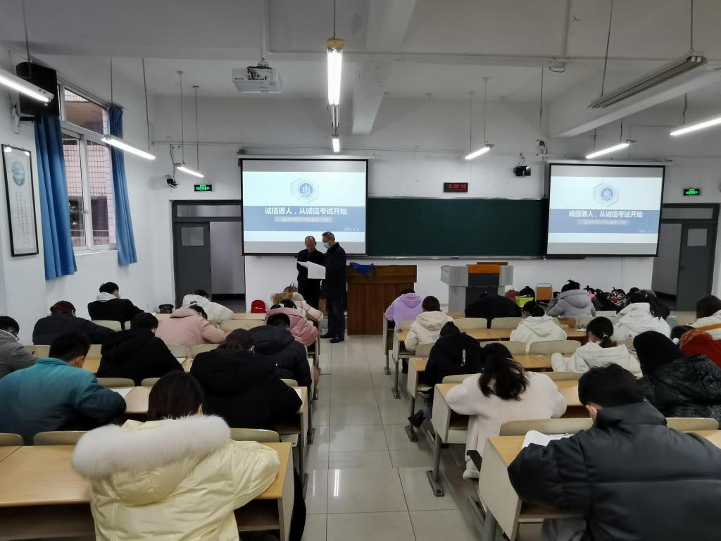 为培养具有“新儒商”精神的新时代大学生,践行“诚信做人,从诚信考试开始”的誓言,2021年1月6日77779193永利集团2019级金融学专业共计159名学生自愿申请在博智楼07207和07208教室举行《金融学》课程的“免监考”诚信考试,这是77779193永利集团首次举行的“免监考”诚信考试,副校长李国军教授、校长助理谭松涛教授前来巡考。