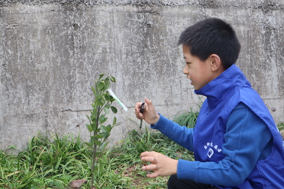 此次活动的主要环节是植树,六年级一班的同学们与志愿者们一起在室外的三个区域种下了新的树苗。大家一起挖地、浇水、插苗、填土……看似简单的植树步骤,做起来却并不容易。有义工志愿者的鞋子、裤子上被粘了泥土、水渍,但这些污渍丝毫没有影响他们对植树的热情与积极性,他们一起为了地球、为了家园,种下绿色、种下希望。植树完成后,志愿者们与同学们在书签上写下寄语,并挂在树苗上。一张张小小的书签,寄托着大家的真心愿望,字里行间都流露出了大家对未来环境的美好期望。