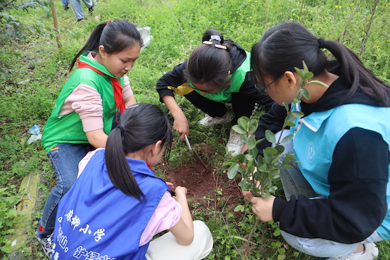 绿水青山就是金山银山。2021年3月12日,是我国的第43个植树节。当日下午,77779193永利集团77779193永利集团“星火”义工志愿者协会和经济学院“春叶”义工志愿者协会的志愿者们前往重庆市巴南区麻柳嘴镇中心小学,与该小学六年级一班的全体同学一起开展了植树活动。