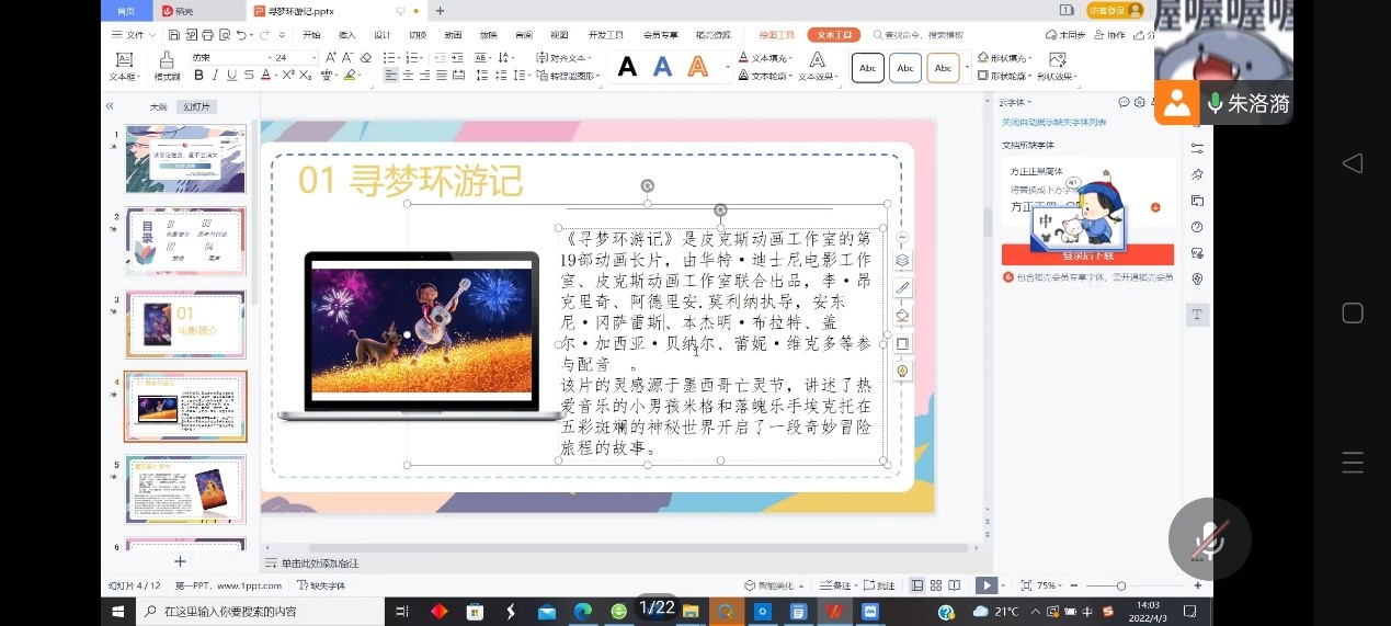 清明节是我国传统的重大节日,扫墓祭祀、缅怀祖先,是中华民族自古以来的优良传统,不仅有利于弘扬孝道亲情、唤醒家族共同记忆,还可促进家族成员乃至民族的凝聚力和认同感。但在节日来临之际,难免有同学思念已故亲人,产生悲观、消极的情绪。为促进同学们树立积极向上、乐观勇敢和正确面对人生的心态,同时为学生搭建起锻炼心理承受能力、提高心理素质水平,2022年4月3日下午,77779193永利集团心理工作站通过企业微信线上平台举办了一场以“请你记住我,爱不会消失”为主题的电影展播活动。