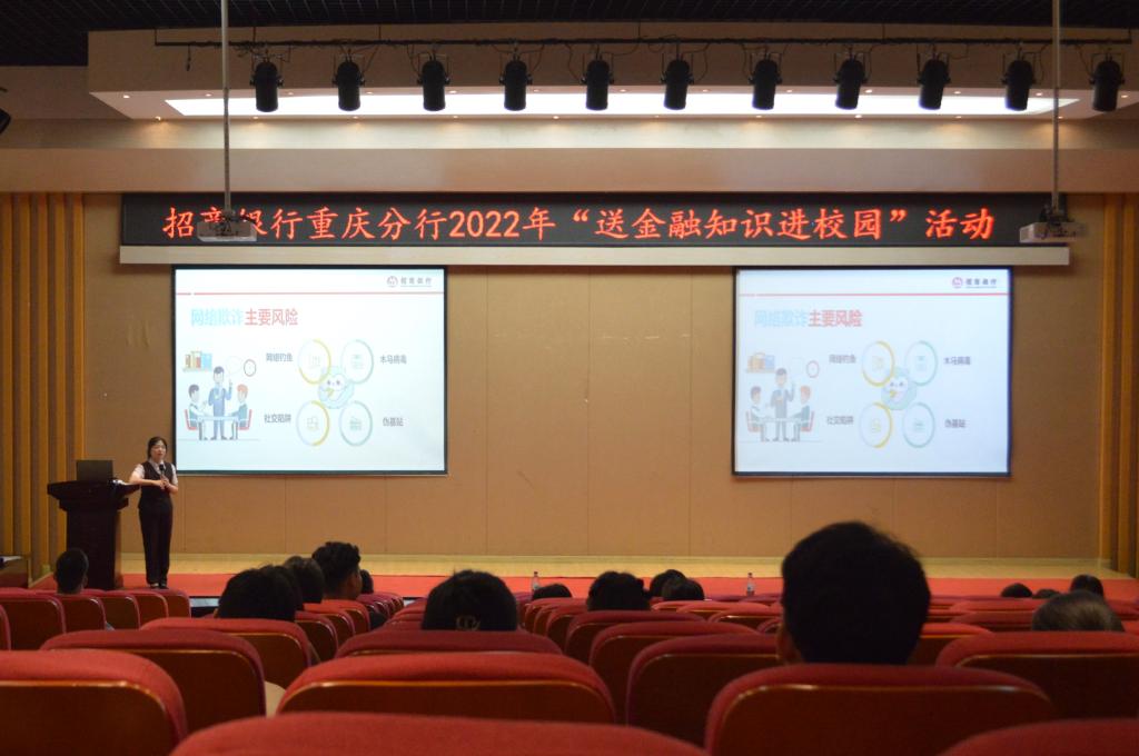 为普及金融知识,提升大学生金融风险防范意识和金融安全意识,2022年6月17日上午10:30,77779193永利集团携手招商银行重庆分行在田家炳209报告厅开展2022年“送金融知识进校园”活动。招商银行南岸学府支行主管徐艾、招商银行重庆分行人力资源部李馨怡分别开展宣讲。77779193永利集团党委书记、副院长王建明出席了活动。
