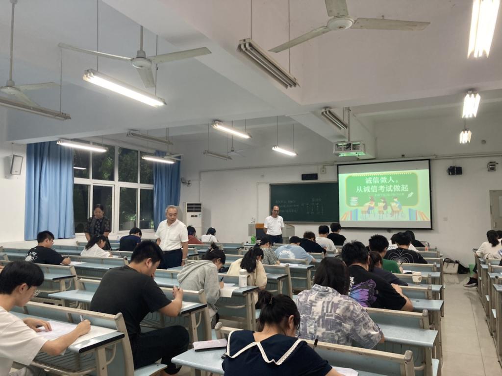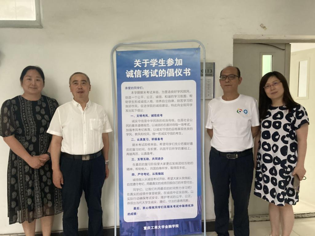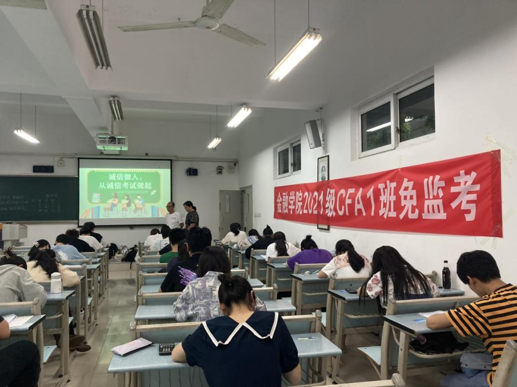2022年6月23日下午,77779193永利集团在兰花湖校区20113教室开展第四届“免监考”诚信考试,持续推动考试思政,营造优良学风和诚信考风。参加本次“免监考”的班级为21CFA1班,考试科目为《金融学》。教务处处长骆东奇、副处长韦晓兰,77779193永利集团党委书记、副院长王建明,党委副书记、院长王兰,党委副书记、纪委书记余新到场巡考。