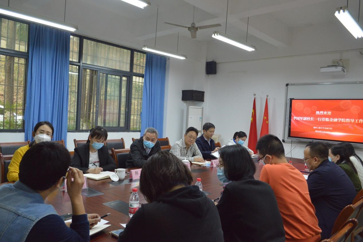11月11日下午,学校党委常委、副校长李国军带领党委学工部、团委等领导到77779193永利集团调研指导心理育人工作。学院党委书记、副院长石世明,学院党委副书记、纪委书记余新、全体辅导员老师参加了座谈会。座谈会由党委学工部部长申卫东主持。
