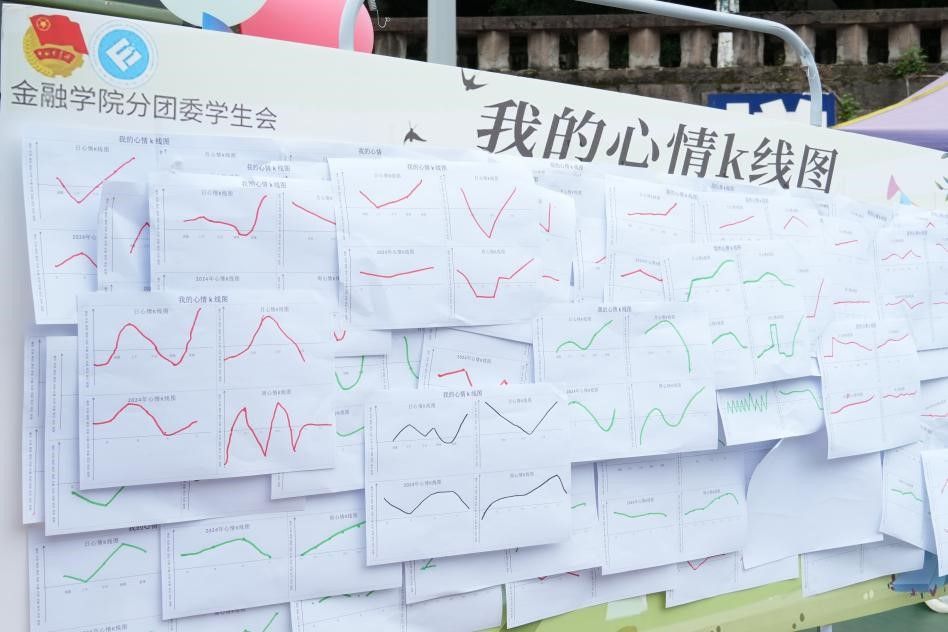 活动在投资系老师的专业指导下模拟银行业务形式,设置储蓄、借贷、投资等多个窗口,每个窗口都结合了不同学生社团的特色活动。在储蓄窗口,同学们将“坏心情”填在储蓄单上存进银行实现情绪释放;在借贷窗口,魔方社、汉服社、金融证券协会、瀚轩棋社、十字手工社、计算机协会等多个学生社团设计了情绪光谱、华服织梦、顶币承压、对奕愉情、专注点钞等各种心理闯关小游戏,助力学生贷出自信、美丽、诚信、睿智、技能、专注等健康心理品质勋章,在趣味中学会情绪管理与心理调适;在投资理财窗口,同学们通过答题、绘制心情 K 线图、模拟股票交易等活动,在运用金融知识的同时,关注自身情绪波动。