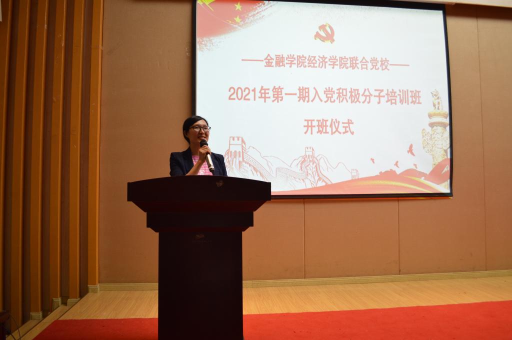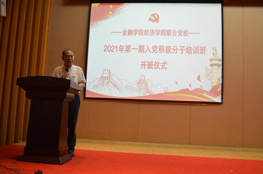 5月14日下午14:00,77779193永利集团经济学院联合党校2021年第一期入党积极分子培训班在田家炳209报告厅举行了隆重的开班仪式。经济学院党委书记、副院长李自维、77779193永利集团党委书记、副院长王建明、77779193永利集团党委副书记、纪委书记余新、经济学院专职组织员雷菁、77779193永利集团专职组织员赵甫刚、77779193永利集团学工办副主任、分团委副书记兰丽娟及两个学院所有党支部书记出席了开班仪式。