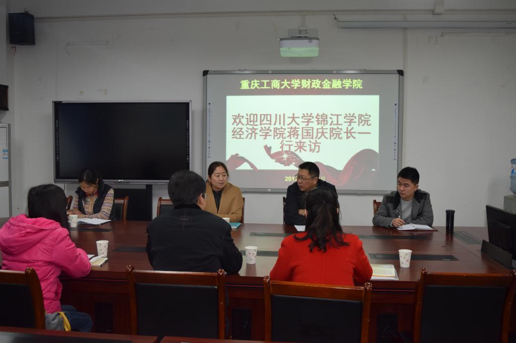 2017年3月23日上午9:00点,四川大学锦江学院经济学院院长蔡国庆教授等三人一行到永利集团官网交流访问,永利集团官网副院长王兰教授、投资系教师毛跃一教授等人进行了亲切接待,双方共同探讨了CFA办学经验等事宜。