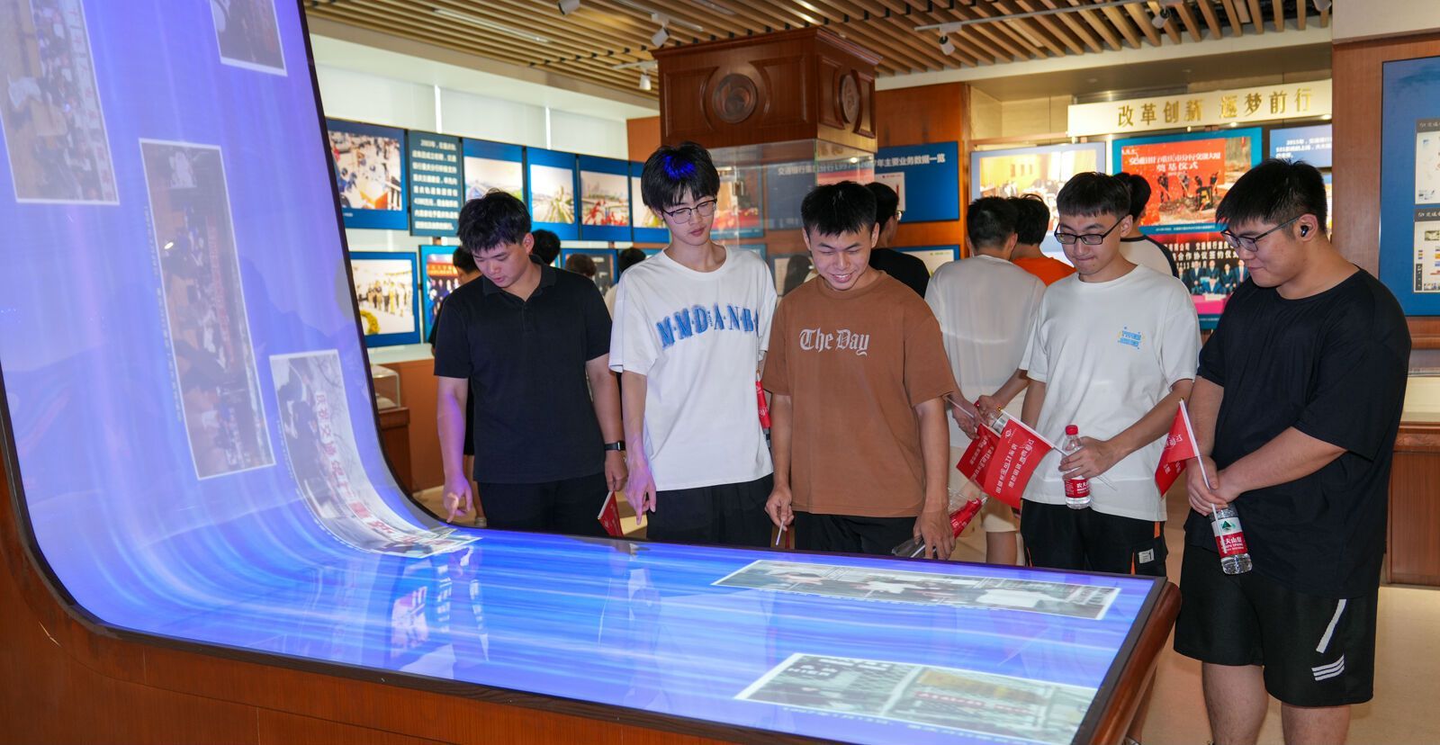 9月20日现场研学中,同学们走进中国“红色金融教育基地”——交通银行重庆市分行行史馆参学。在讲解员的引导下,同学们参学了“风雨沧桑 创立交行”“服务建设 不辱使命”等展区,了解交通银行肩负金融使命、践行实业救国的红色金融事迹、以及新时代重庆交行创新发展历程。