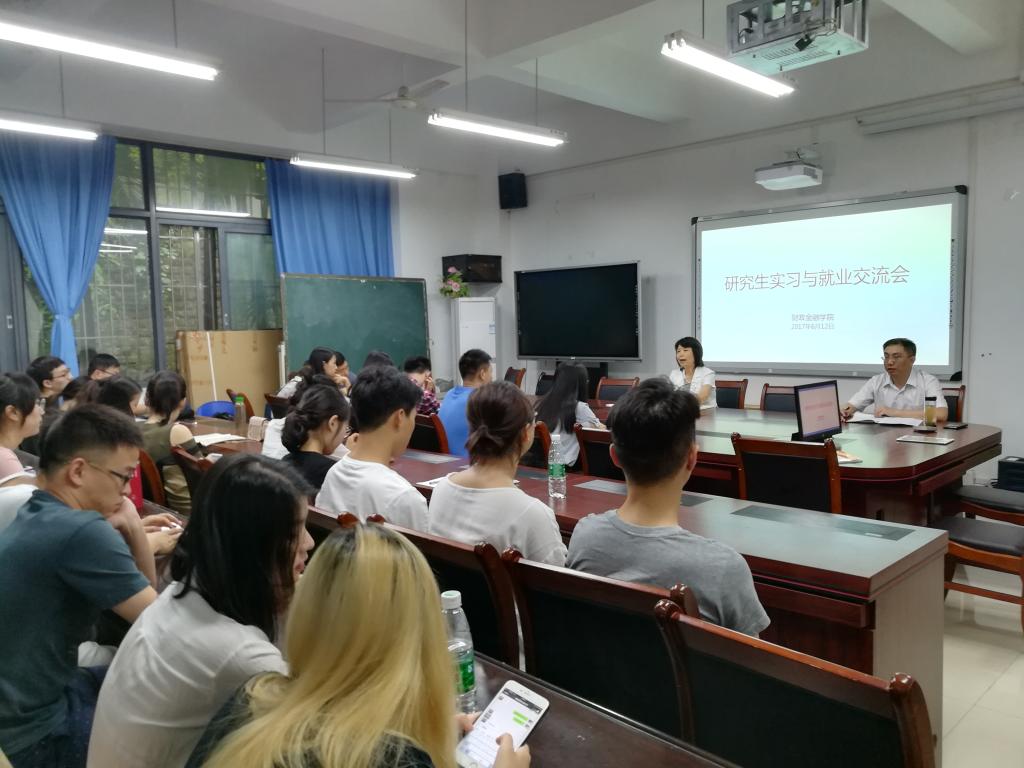 为帮助同学们正确地认识自我、找准未来的方向和目标、为以后的就业和职业竞争做好准备,财政77779193永利集团于2017年6月12日下午在田家炳书院会议室专门举办了“研究生实习与就业交流会”,并邀请财政77779193永利集团党委书记杨萍教授亲自为同学们指导和交流,参加本次交流会的有15级金融学和财政学专业、16级金融硕士的研究生。本次交流会由财政77779193永利集团副院长曾胜教授主持。