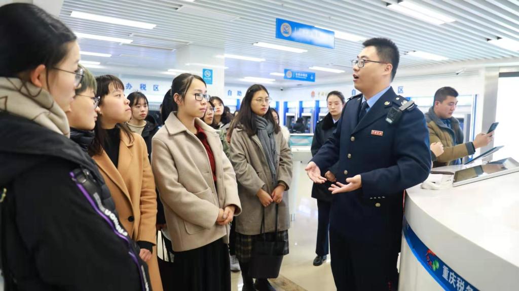 为了加强税收理论与实践融合教学,2019年12月26日下午,永利集团官网财政77779193永利集团组织2019级16名税务硕士走进重庆市南岸区税务局办税服务厅,开展了一次以学习大数据办税为主题的移动课堂。